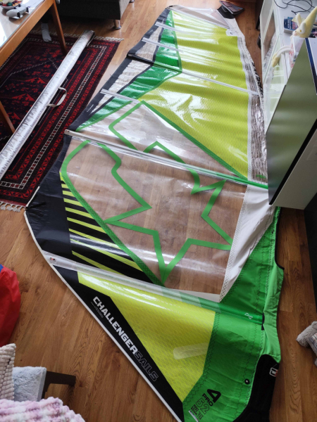 Plachta ChallengerSails 4PRO 5,2m2 + obal. Velmi pěkná, pouze jsem si kolenem protrhnul spodní okno. Zalepeno skelnou páskou. K vyzvednutí Praha 9, nebo po domluvě F-M