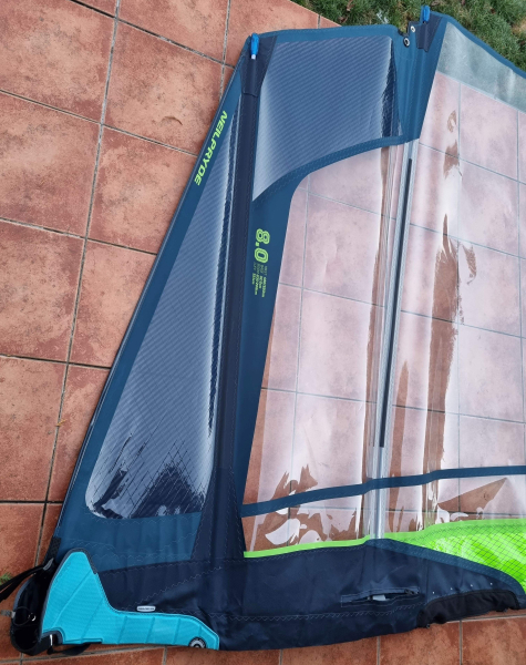 Dále prodám plachtu Neil Pryde V8 Flight 8 m2, 521/208 cm, na stěžeň 490 SDM CC. Model 2023, koupena nová v ČR ve 2024. Vynikající stav, cca 5x na vodě, bez oprav, cena 7000 Kč.
