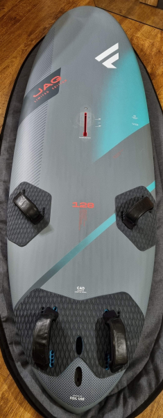 Dále prodám Fanatic Jag 128 l, 235/76 cm, 7.6 kg, pro plachty do 9.2 m2, s orig flosnou 41 cm a o trochu větším obalem. Model 2023, koupen nový v UK ve 2025. Velmi dobrý stav, 1 oprava na dně způsobená flosnou jiného prkna na břehu, cena 22000 Kč. Foto doplním.